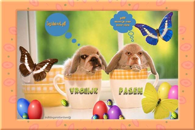 enneh..wilde even nog wat laten zien..moest voor iemand paaskaart maken met haar bulldogs….zie hier de uitkomst..whahahhahhaha…