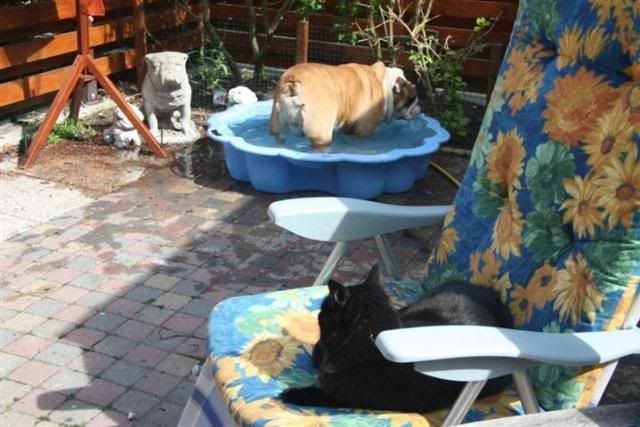 Moobje in het bad..en op de voorgrond Bandit lekker aan het luieren op de stoel