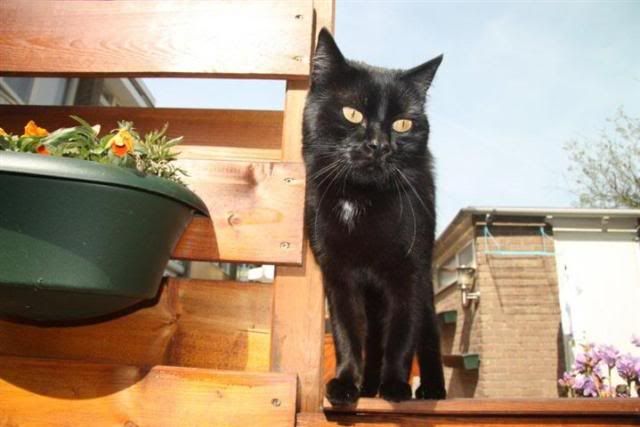 Oh ja, Mijn buuf heeft gisteren zulke leuke foto’s gemaakt van Pica, mijn kat! Die zat in haar tuin, op de onderste plank van de side table, in een kistje, prachtig!!! Haar hond en pica kunnen zo heerlijk samen spelen, ik hoor Anneke regelmatig lachen,