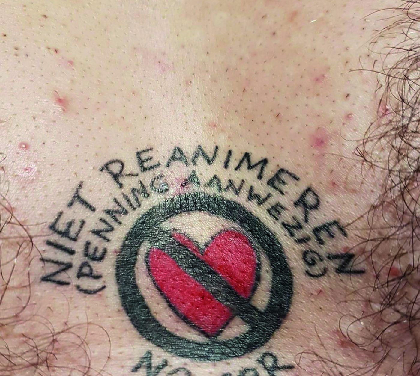 Erik liet een niet-reanimeren tatoeage op zijn borst plaatsen
