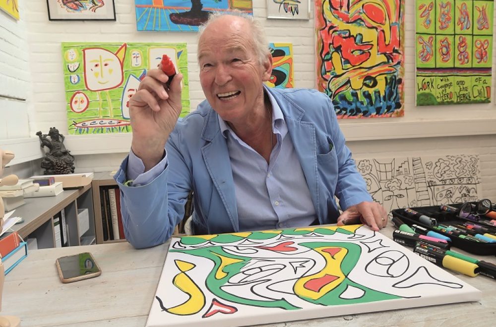 “Ik ben met veel dingen bezig, maar heb het gevoel dat ik niks doe, omdat ik altijd alles zelf kan bepalen. Elke twee dagen maak ik een kleurig schilderij in mijn atelier. De opbrengst gaat naar de Peter Faber Stichting. De missie van de stichting is om iedereen ongeacht afkomst, achterstand of beperking de switch te laten maken van destructieve naar creatieve energie. Momenteel draait in de gevangenis het creatieve persoonlijke ontwikkelingstraject ‘Uit de Bajes terwijl je er nog in zit’, op scholen ‘Misdaadpreventie in de dop’. Ook maken we de film De bajes draait door. Iedereen werkt eraan mee: gevangeniswerkers, casemanagers en gevangenen. Ik skype regelmatig met een paar gasten in de gevangenis die me dierbaar zijn. Voor tv doe ik mee aan een programma rond de Nederlandse Portretprijs, een film over Indonesië en het programma De Koeienfluisteraar.”